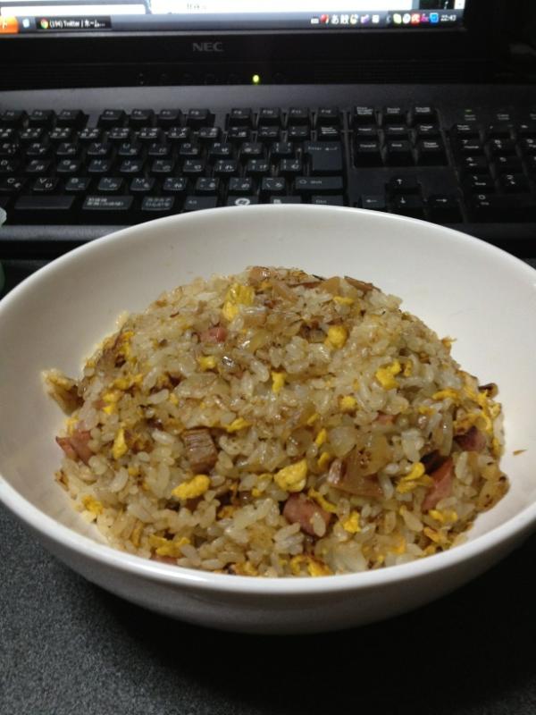 これは夜食です教習所で帰りが遅れてしまっておそめの晩御飯ですチャーハンうまうま